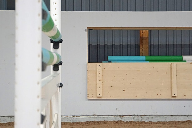 Vi erbjuder även andra utföranden, till exempel sarg med skivmaterial eller enklare staketlösningar runt manegen. Oavsett vilken lösning du väljer anpassar vi designen efter dina behov – inklusive portöppningar, funktionella tillval och smart förvaring som integreras i sargen.