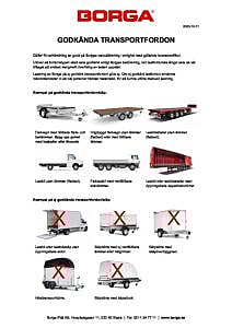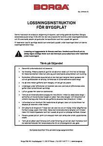 Lastning av materialet ombesörjes av Borga. Efter att materialet är lastat övergår ansvaret för varorna till köparen. Kostnader som uppstår om materialet skadas, förstörs eller försvinner efter lastning bekostas av köparen. Om transportfordonet ej är godkänt enligt Borgas instruktion (se bilaga) äger Borga rätten att neka köparen lastningshjälp alternativt bistå med lastningen, men då utan ansvar för eventuella skador.