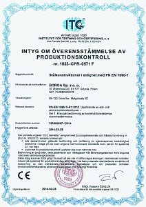 • Certifikat bärverksdelar av stål EN 1090-1