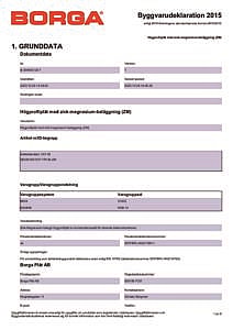 Plåten är CE-märkt och tillverkas i Borgas EN 1090-1-certifierade produktionsanläggning i Skara. Komplett dokumentation tillhandahålles självklart.
