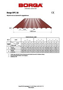 Borga BPE 18 används för väggbeklädnad av olika sorters byggnader. Profilens optimala täckbredd gör den till en av våra mest ekonomiska lösningar. Den asymmetriska formen med breda övre profiltoppar och smala dalar ger fasaden ett tidlöst, klassiskt utseende. Profilen kan monteras antingen horisontellt eller vertikalt och lämpar sig väl för både små och stora ytor.