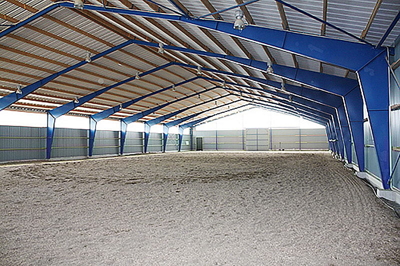 Ridhus med stall, Skara Föregående träffar Nästa av Byggnaden är totalt 31 meter bred. Ridhuset är 25 meter och stallet är 6 meter brett. Få en kostnadsfri offert! Fakta Väggbeklädnad BPE 18 Takbeklädnad Super 40 Användningsområde Hästsport , Häststall , Oisolerade ridhus Längd 60 meter Bredd 31 meter Höjd 4.6 meter Area 1860 m² Isolerad Nej Lösningar Armerad glasfiberplast Skjutportar Dörrar Takavvattning Projektdata Projektnummer 1033 Land Sverige Skriv ut